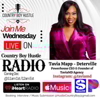 Join Country Boy Hustle Radio Show next week as Tavia Mapp-Deterville, the pioneering CEO and Founder of The TaviaMD Agency, discusses her remarkable journey. With a career spanning nearly two decades, Tavia has developed a distinctive approach to public relations, yielding groundbreaking results that catapult her clients to the pinnacle of success. Her diverse client list boasts an array of talented individuals, including Leela James, Toosii, Boosie Badazz, Paul Wall, Renni Rucci, K Carbon, Big 30, Big Homiie G, KEM, Don Trip, Drew Sidora, and more. Through her tireless efforts, TaviaMD continues to redefine the landscape of entertainment and beyond.